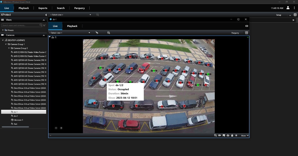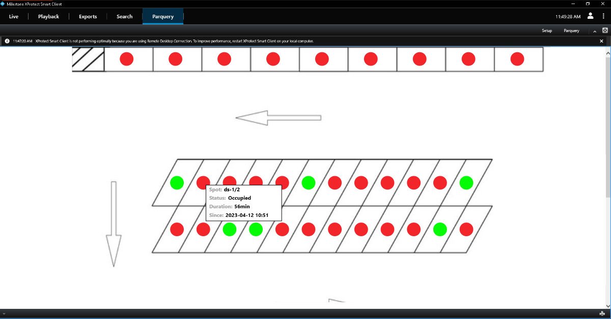 Darüber hinaus können sie direkt im Smart Client im Live- und Wiedergabemodus auf die Belegungsdaten und die Parkdauer zugreifen, die über die Kamerabilder eingeblendet werden. Im Wiedergabemodus kann der Nutzer mit einem Slider durch die Bildchronik blättern und den Belegungsstatus zu beliebigen Zeitpunkten einsehen.