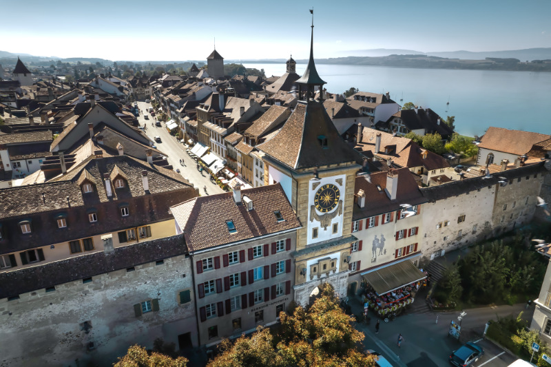 A picturesque medieval town in western Switzerland on Lake Murten, perfectly blends history, character and modernity. Cobblestone streets, half-timbered houses, and rampart walls transport visitors back in time. At the same time, the town has taken an innovative approach to the parking problems of a historic town with limited parking space.