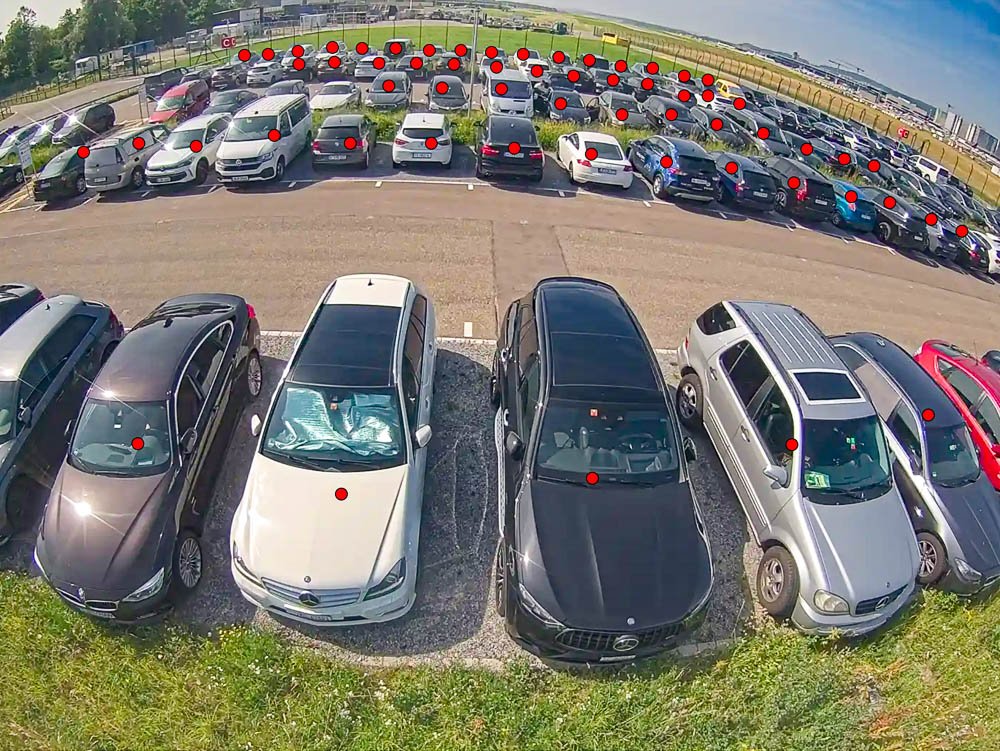 Thus, over 1,500 parking spots are monitored in real-time with just 31 cameras—an average of 50 spots per camera. This approach keeps infrastructure requirements low while delivering reliable results.